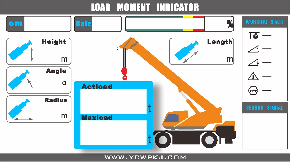 • Product description: Load Moment Indicator (LMI) for Crawler Cranes, Truck Cranes, Rough Terrain Cranes, Truck-Mounted Cranes, Knuckle Boom Cranes, and Various Other Types of Cranes